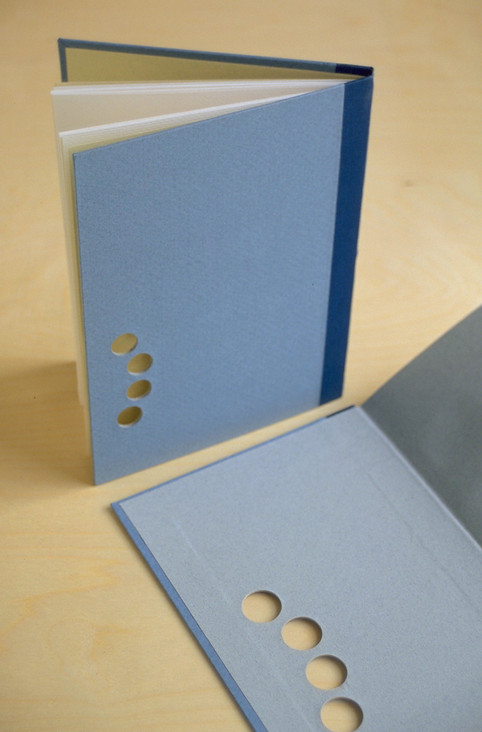 The Austin children's book cover has large finger holes die-cut on the front and smal, child-sized ones on the back. The book physically connects adult and child during their sharing of a written story. This linking of readers necessitates an additional degree of cooperation—how to sit and how to turn the pages—and both reflects and enhances the emotional bonding that occurs.